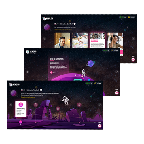 The framework has an assortment of game mechanics that can selected to amplify the narrative and the experience of your induction program and tie it all together.
